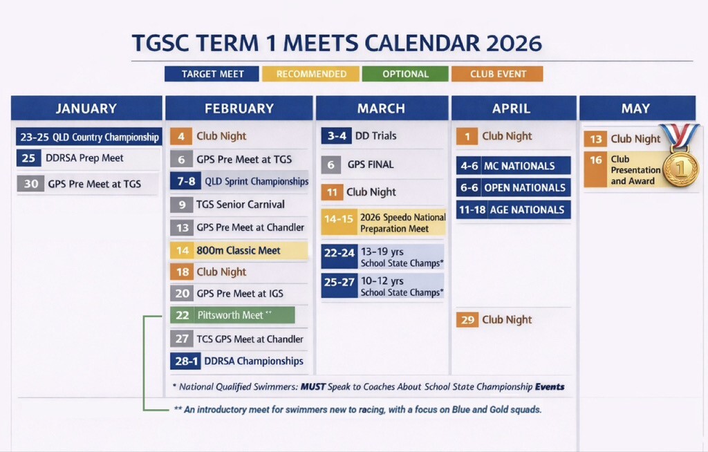 The 2026 Term 1 Meets Calendar is available here.